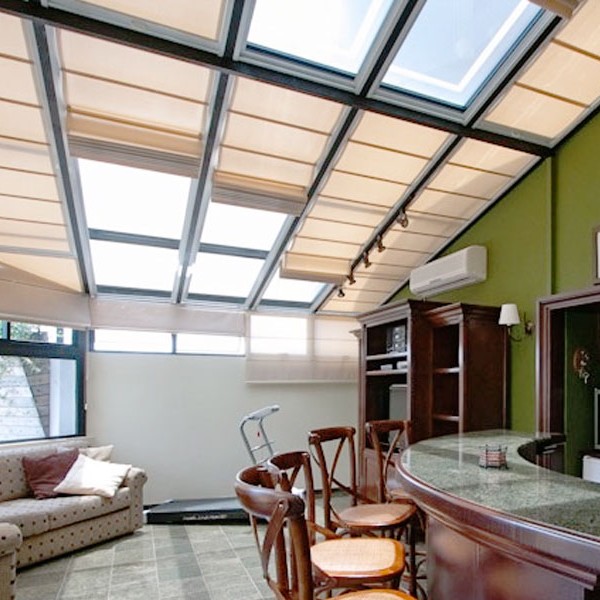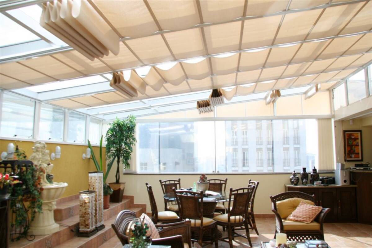 A Cortina de Teto é uma excelente forma de proteção solar para coberturas de vidros. Suas linhas retas e discretas se ajustam perfeitamente aos conceitos arquitetônicos contemporâneos.